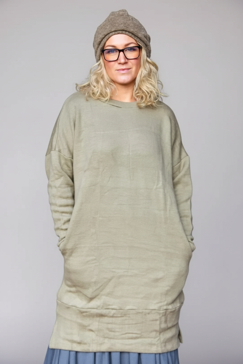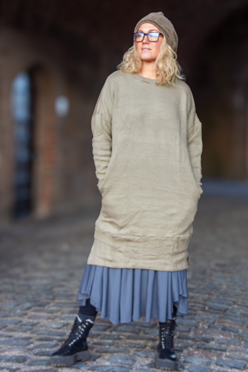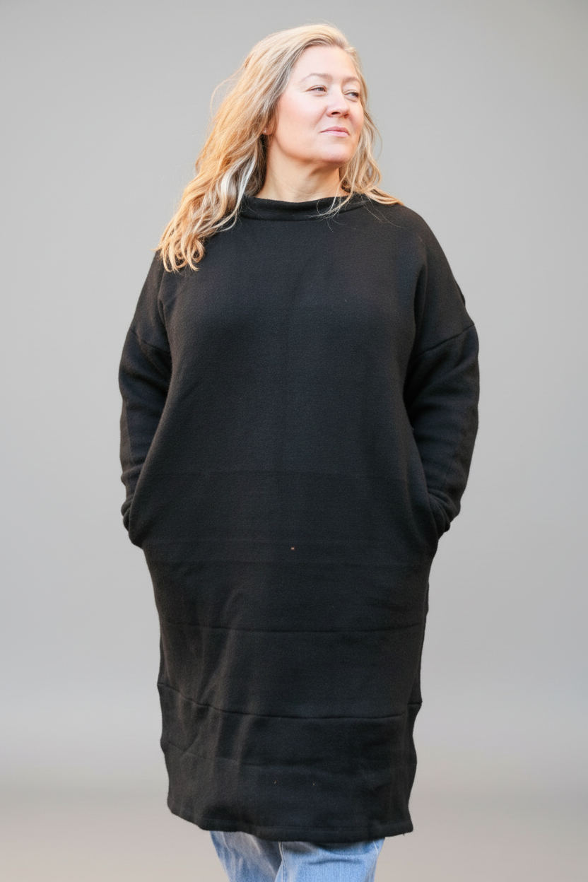 En fantastisk skön, rymlig och mysig långtröja i stickat material. Den perfekta tjocktröjan som håller dig varm och glad året runt. Passar lika bra som klänning.