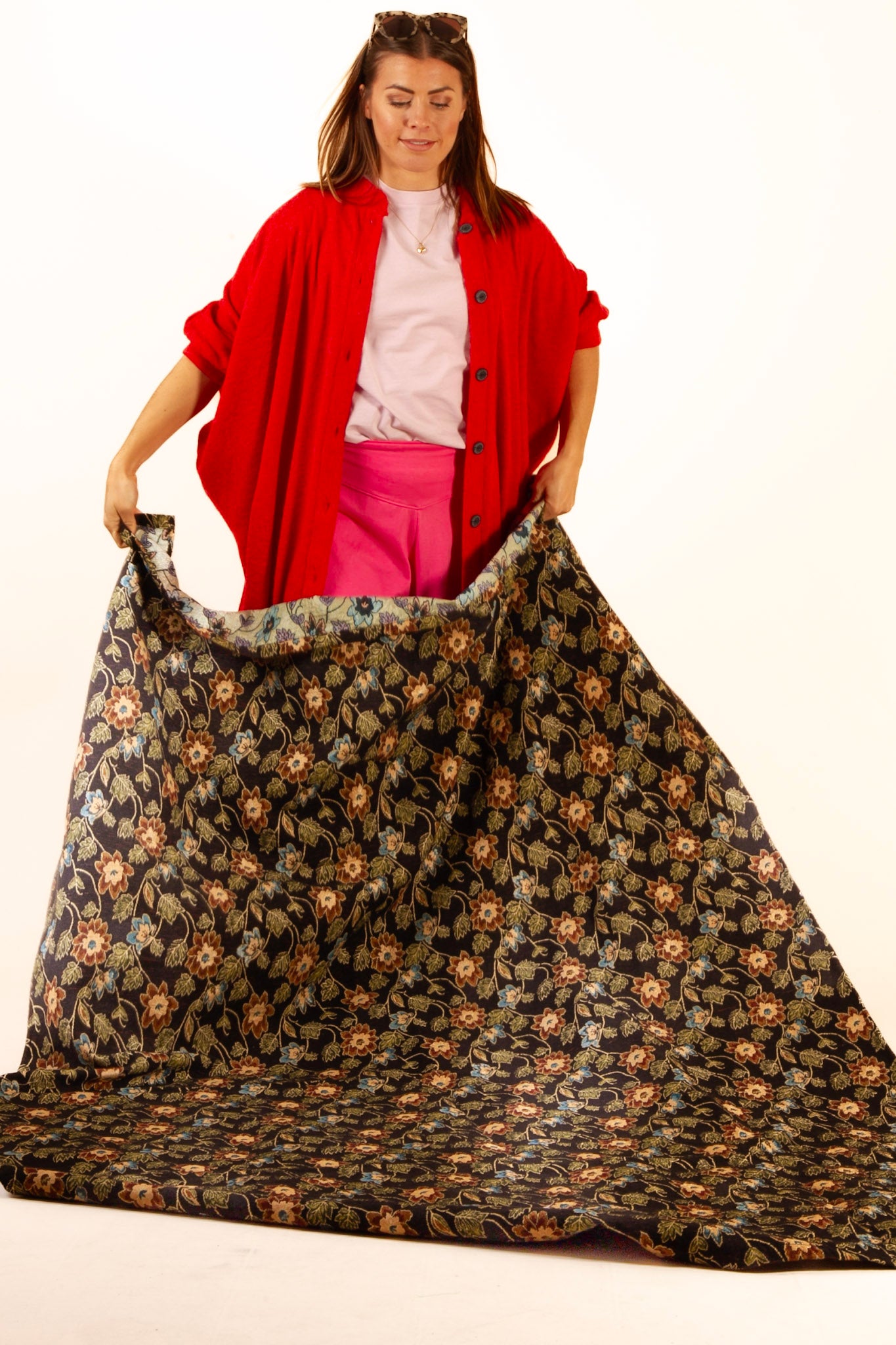 Black Floral Blanket Älvadalen Black Base Flower Print