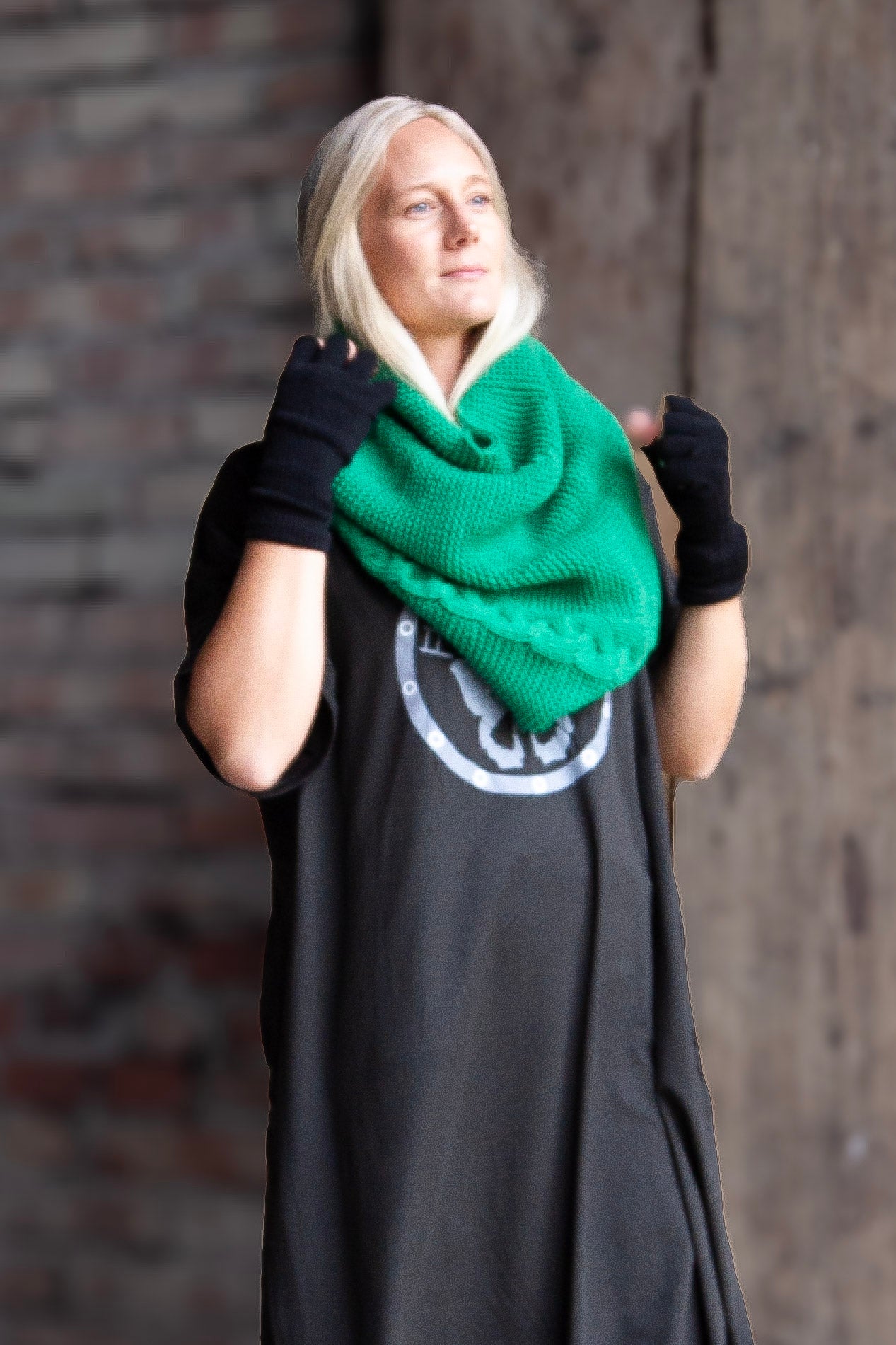 Ingrid är en ribbstickad tubhalsduk – mjuk, varm och enkel att bära. Tack vare den ringformade designen finns inga ändar som hänger eller trasslar, du drar bara över den och är redo för dagen.