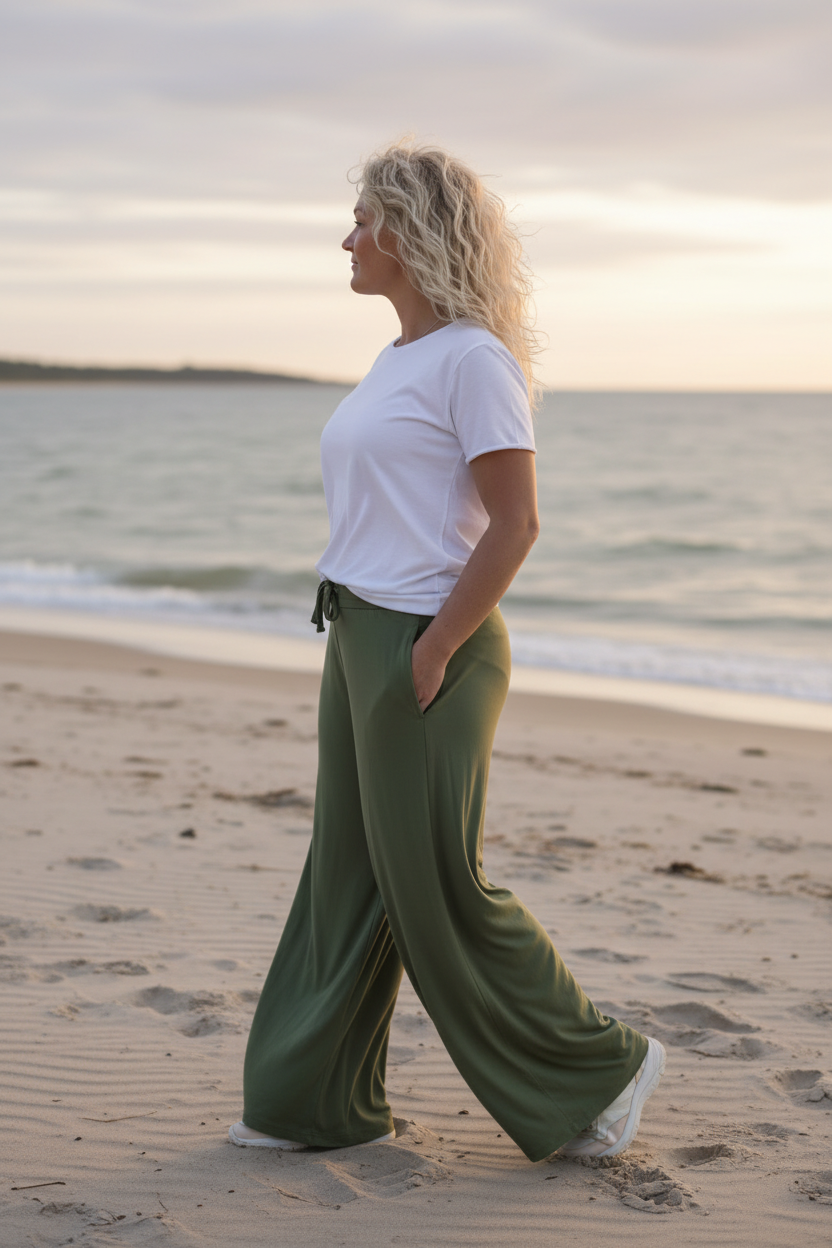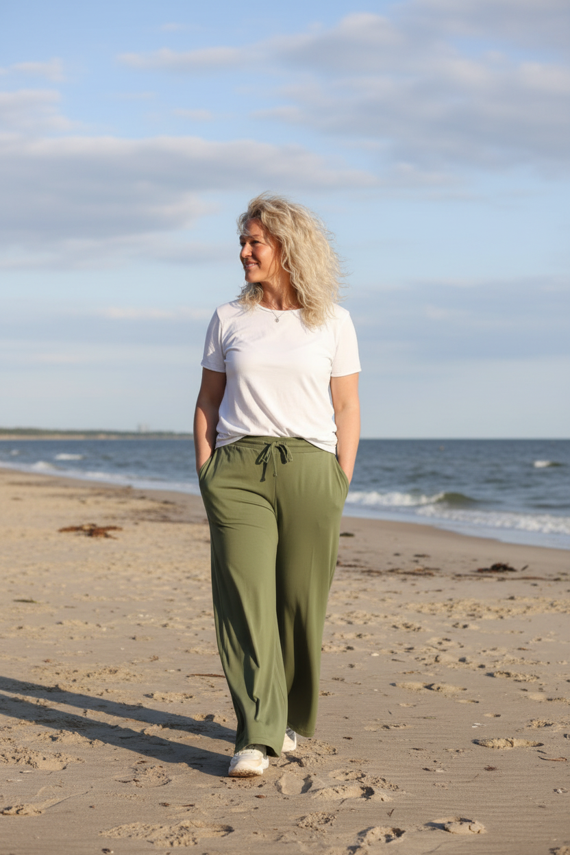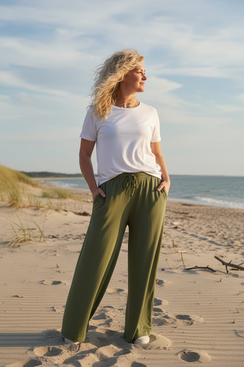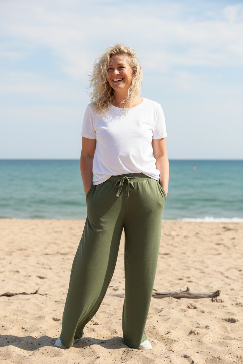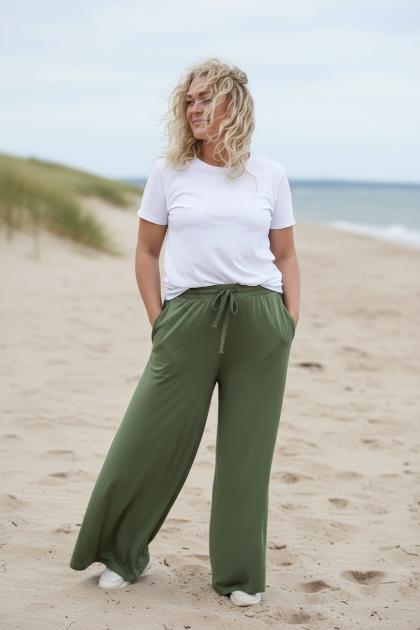 Vår superpopulära byxmodell Lahina i silkesmjuk, stretchigt material. Byxan är mjuka och följsam! En lättmatchad byxa med vida ben, bred midjemudd och knyt i midjan. Passar lika bra till klänning som till långskjorta eller en kort t-shirt.