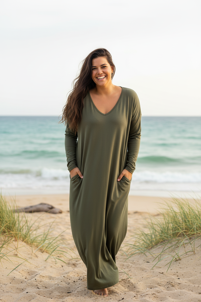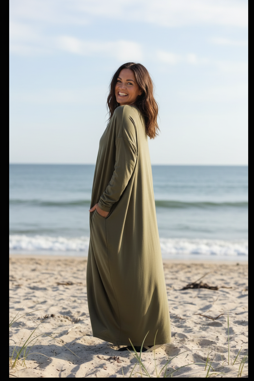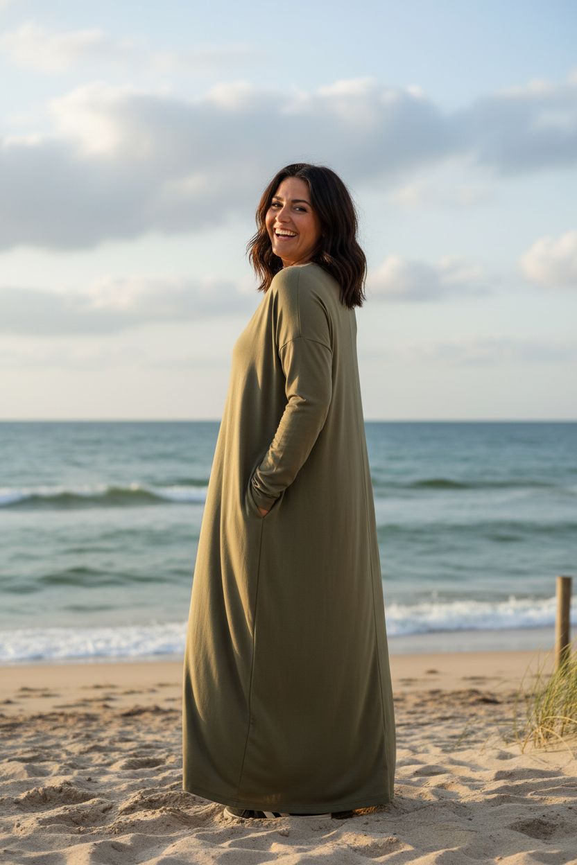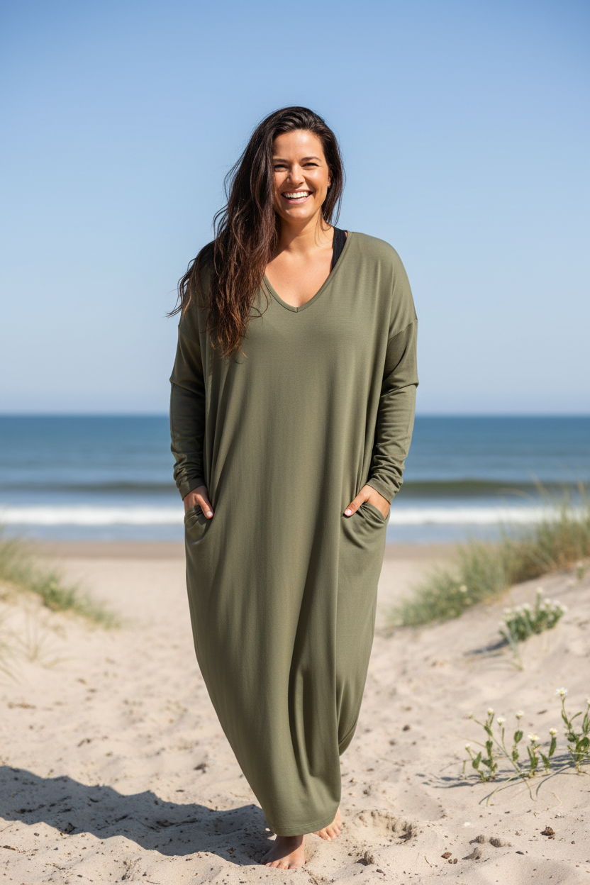 Møt Linn Dress, det er din kjole hvis du liker stil og komfort. Denne kjolen er både myk og fleksibel, noe som gjør den ideell for alle anledninger. Sjenerøst design og i to størrelser: One-Size og One-Size+.