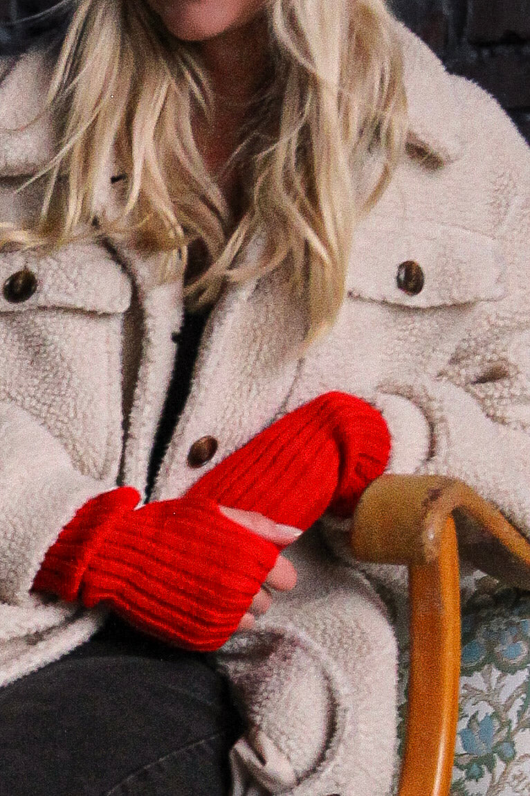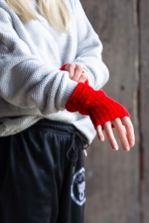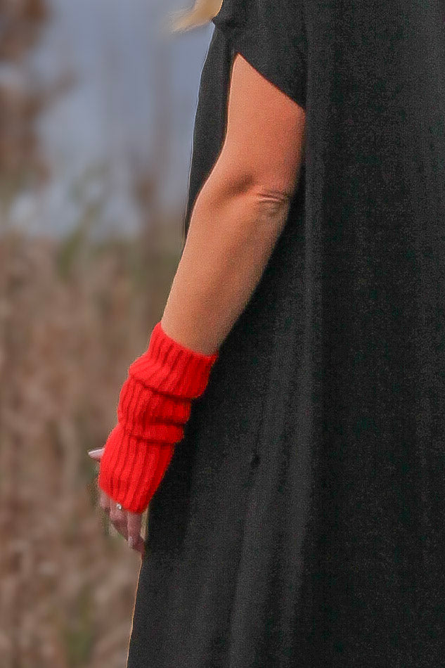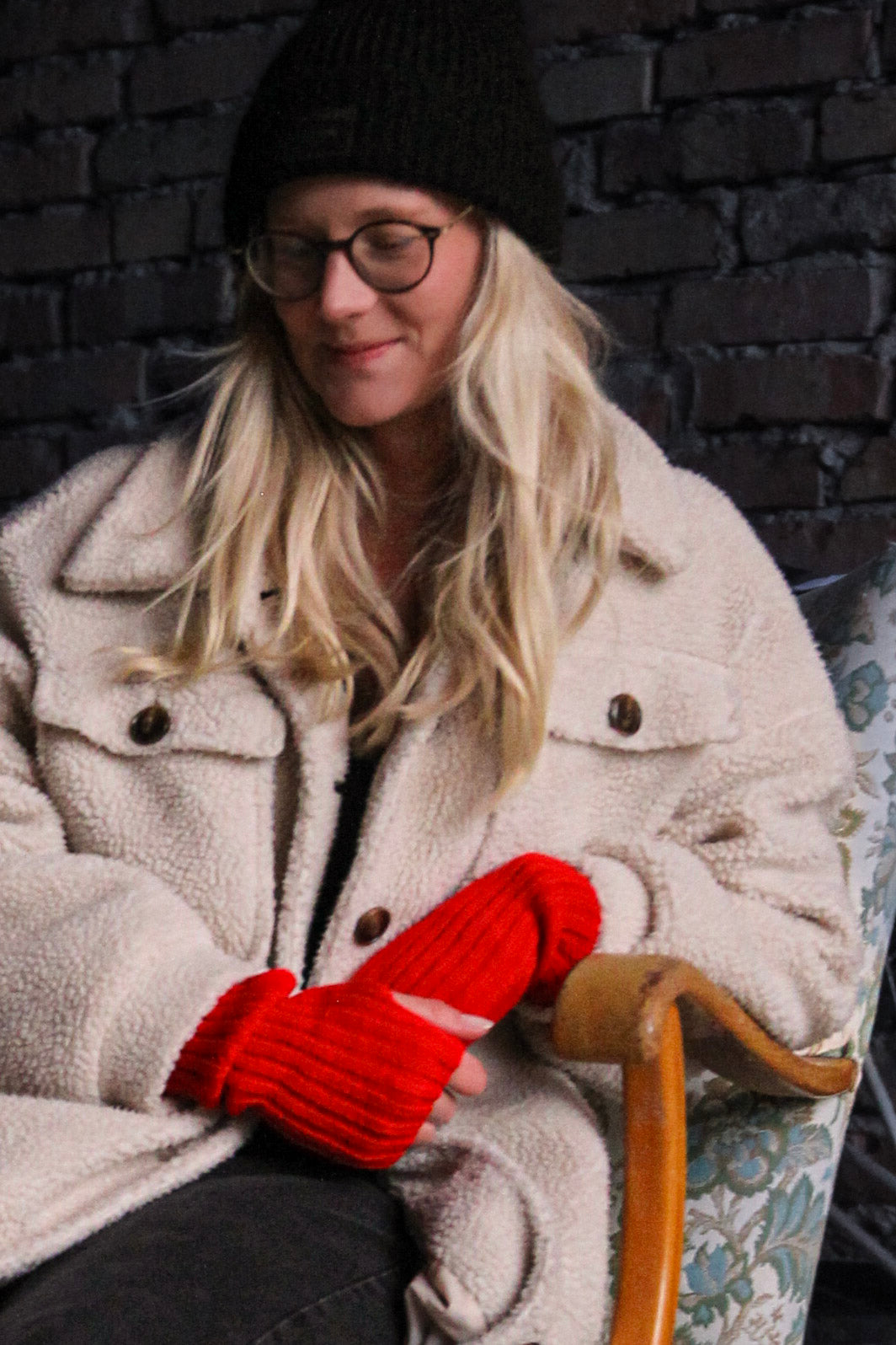 Hedda är de ribbstickade handledsvärmarna som förenar värme, komfort och en lekfull touch av färg. De håller handleder och händer sköna samtidigt som fingrarna är fria – perfekt när du vill vara både varm och rörlig.