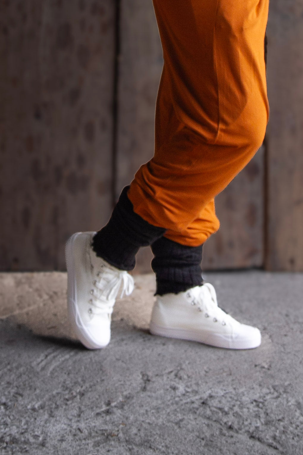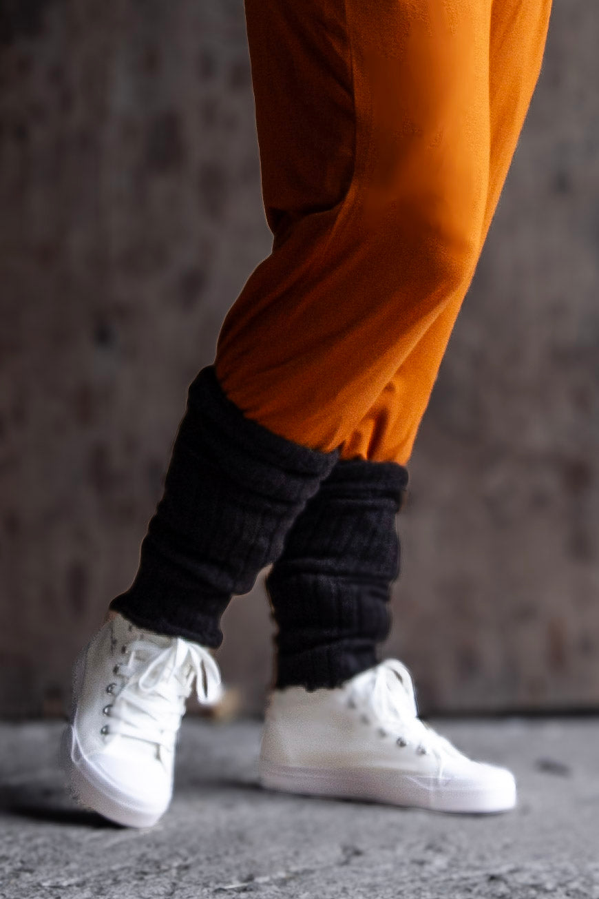 De är stickade i ett mjukt, stretchigt garn med ribbad struktur som formar sig elegant runt benet. Perfekta till klänning, kjol eller över dina tights – hemma, på stan eller i studion.